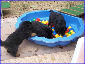 ![]() Das "Bällebad" bringt nicht wirklich Abkühlung. Desteny + Domaris hecheln um die Wette! |