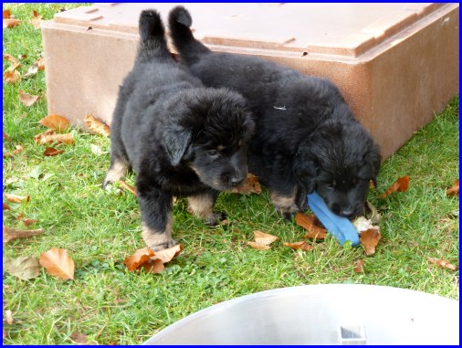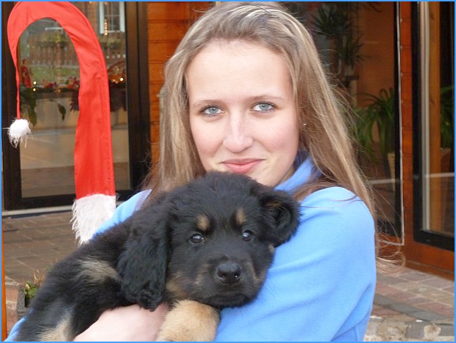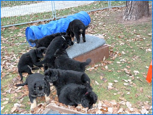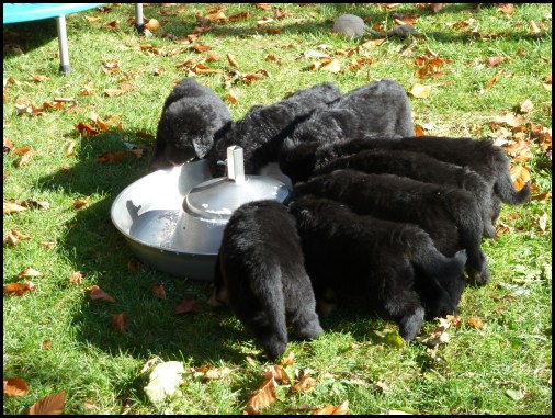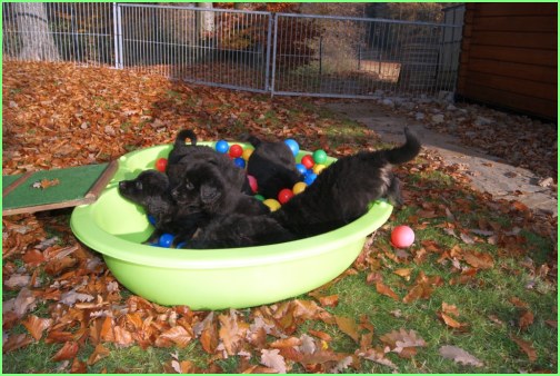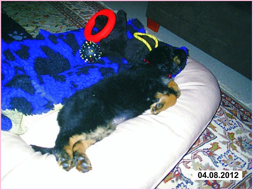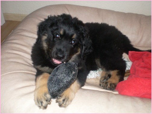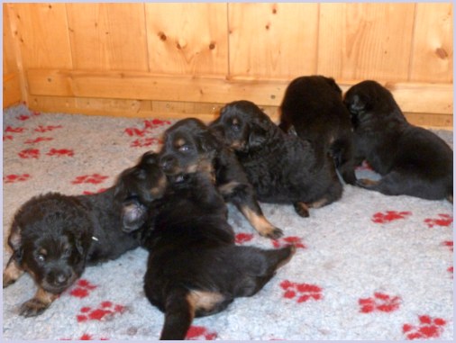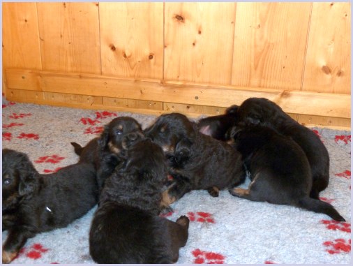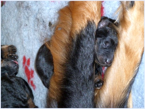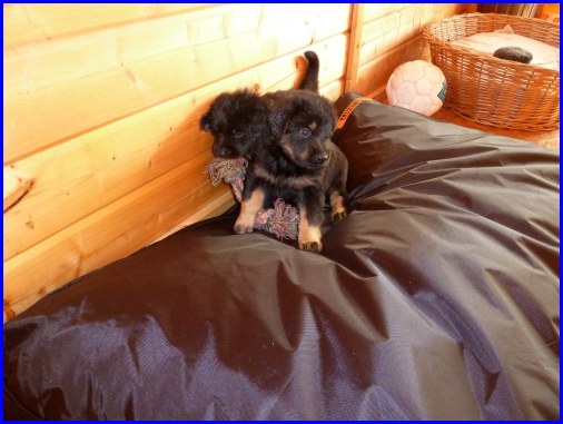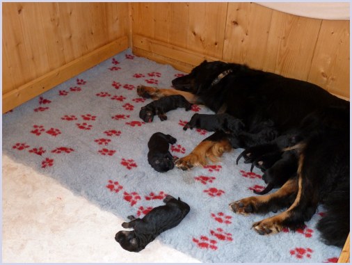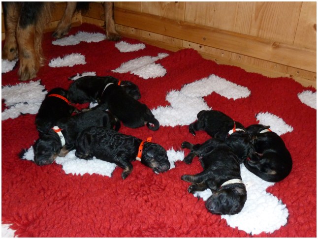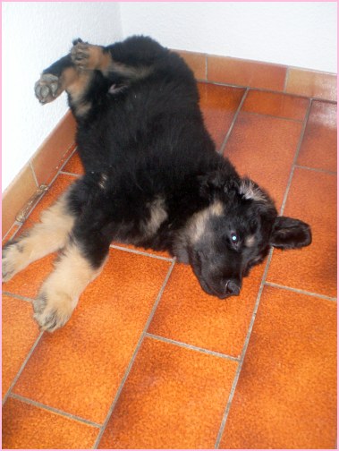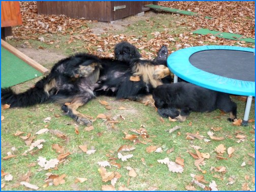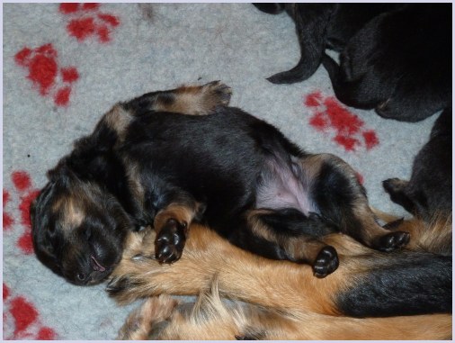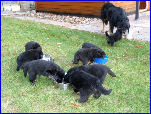 Wir können sehr stolz sein: kein 'Welpe hat irgend einen Zucht ausschließenden Fehler!! (Noch nicht mal ein einziges weißes Haar wurde gefunden!).