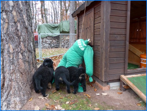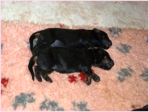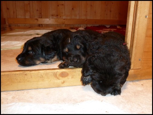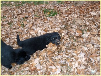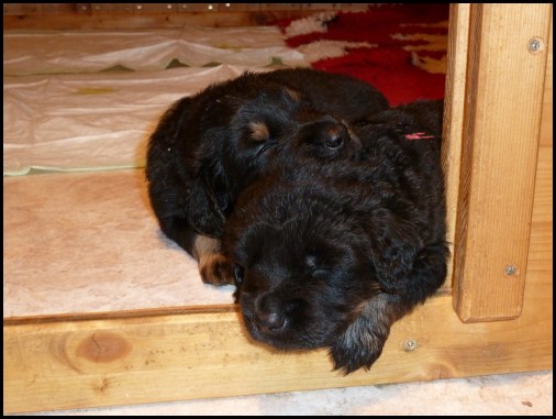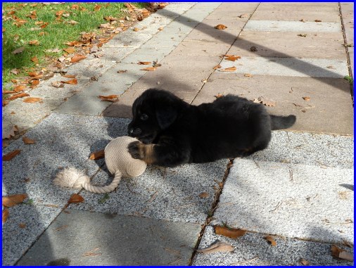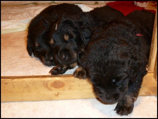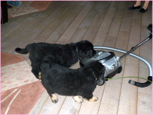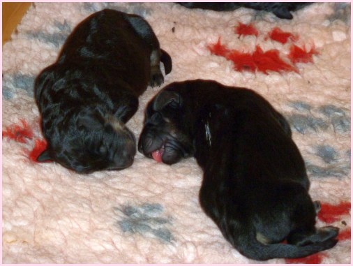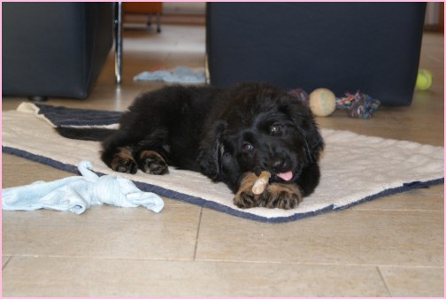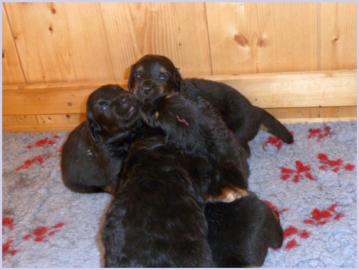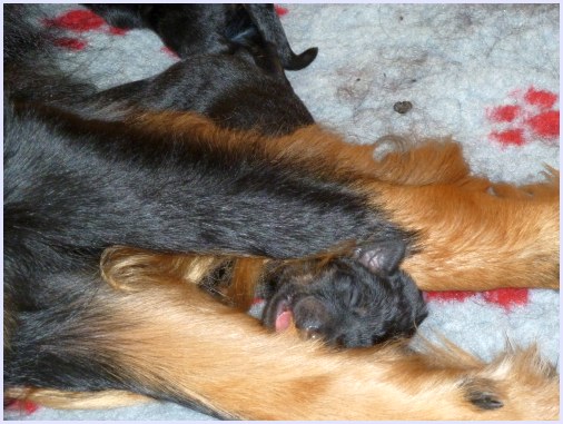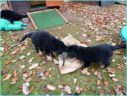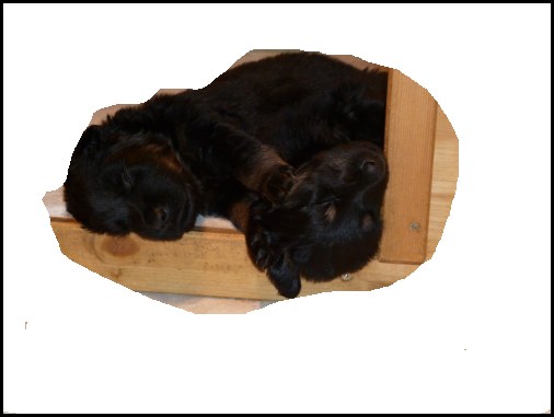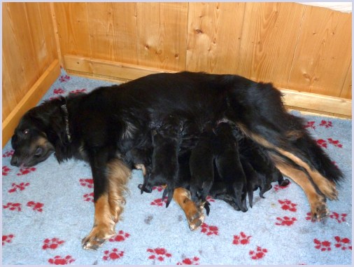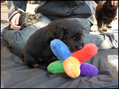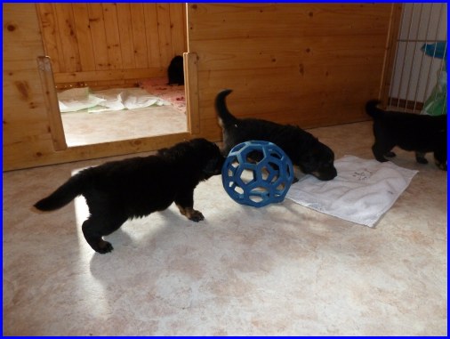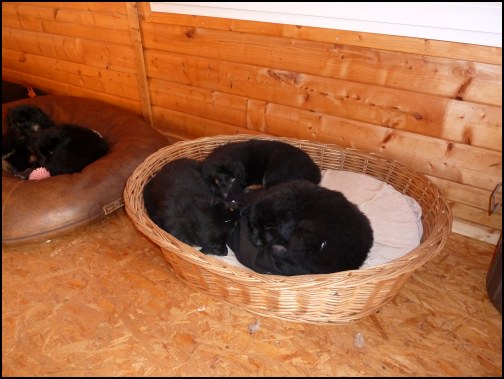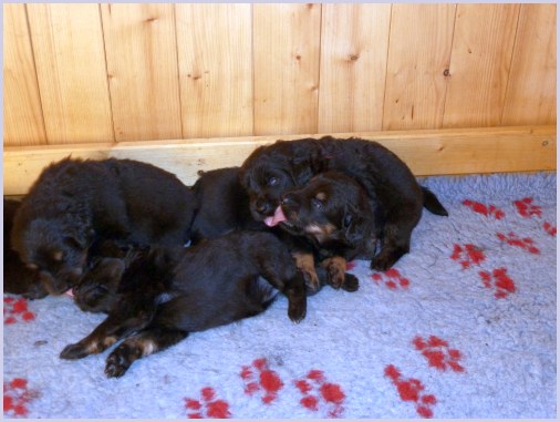 Wir können sehr stolz sein: kein 'Welpe hat irgend einen Zucht ausschließenden Fehler!! (Noch nicht mal ein einziges weißes Haar wurde gefunden!).