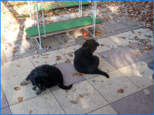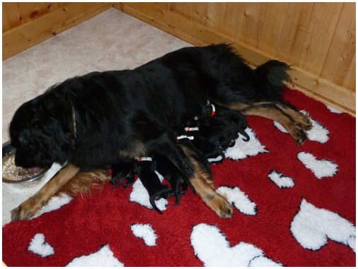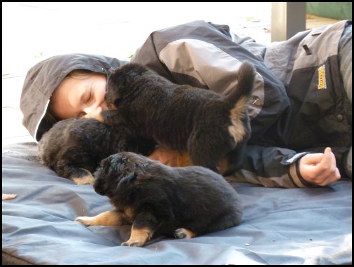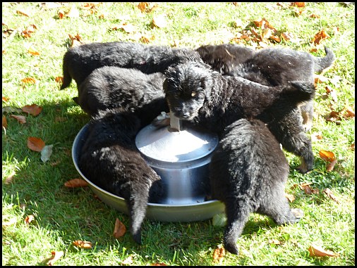 ![]() ...noch nicht einmal zum Fressen werden die Welpen verlassen!! |