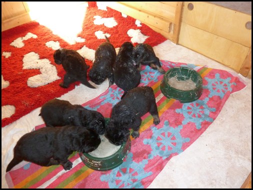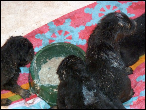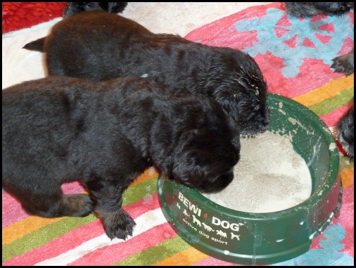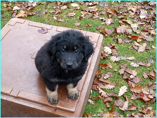 ![]() Leider ist genau soviel Futter auf den Welpen, wie im Napf... |