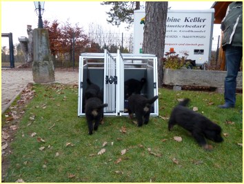 Alle haben sich sofort gemeldet, als sie mit ihrem Hund zu Hause angekommen waren. Auf der Fahrt waren die Welpis ohne Probleme und haben nach der Ankunft sofort und ohne Angst ihre neue Heimat in Besitz genommen. In einigen Familien leben schon erwachsene Hunde, aber das ist für alle kein Problem, wie man auf den nachfolgenden Bildern sehen kann...