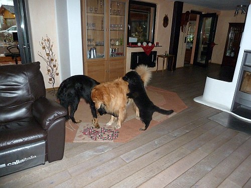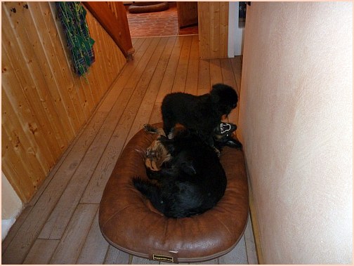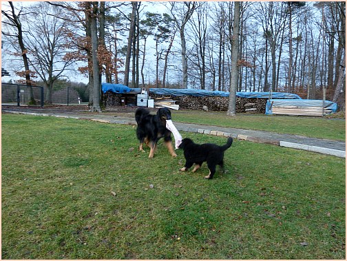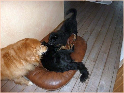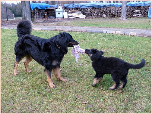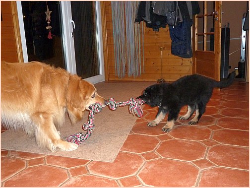 die mich mal wieder zum Knutschen finden)... Ganz neben bei gesagt: es wurde auch wirklich Zeit, dass ich das "Keßlerrudel" wieder komplettiere, bei denen war ja gar nichts mehr los, jetzt ist wenigstens wieder Action!! Die beiden großen Rüden habe ich auch voll im Griff, vor allem der Carat spielt mit mir, wann immer ich will...und ich will immer!! |