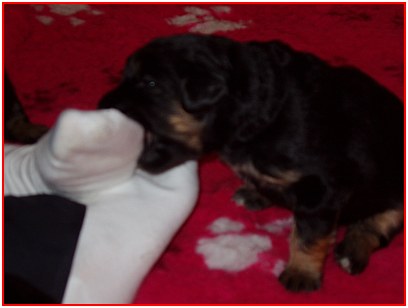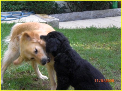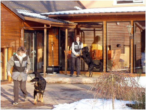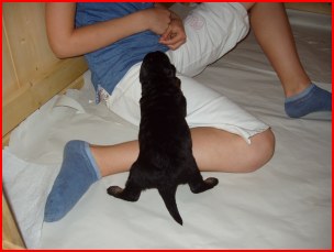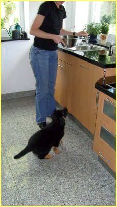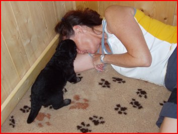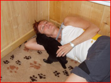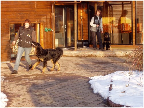 und wenn die Züchterin abgelenkt ist, kann man ihr danach gut in den "Allerwertesten" beißen. (Braxas +Bryana) |