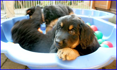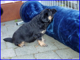 Hovawart-Welpen und ein Knistertunnel: Kein Respekt!! |