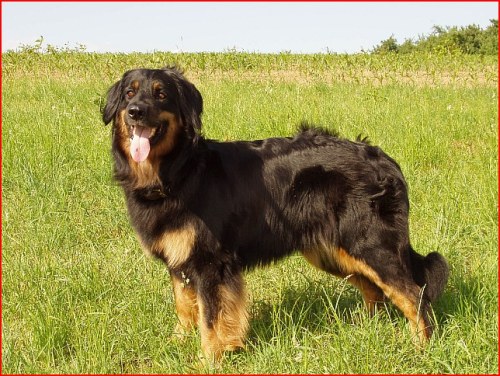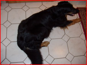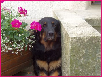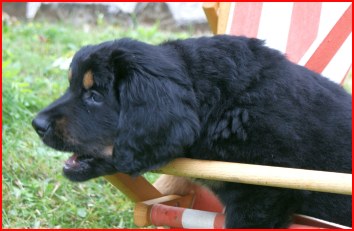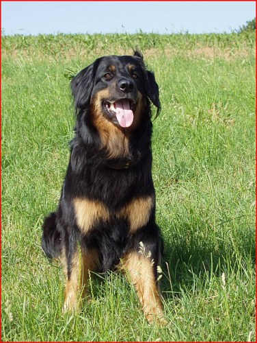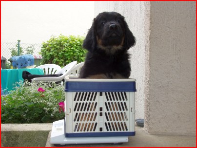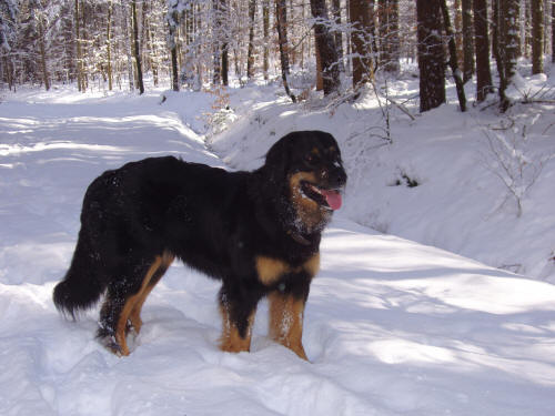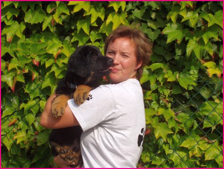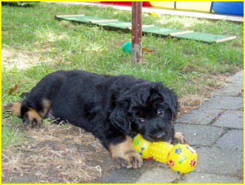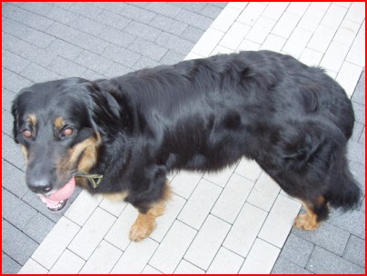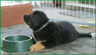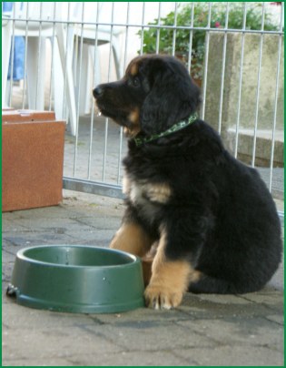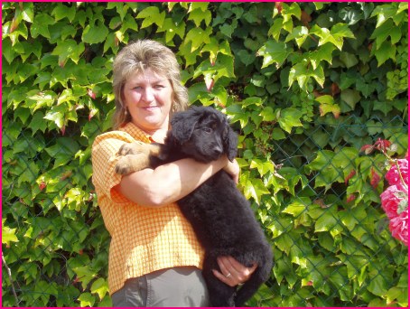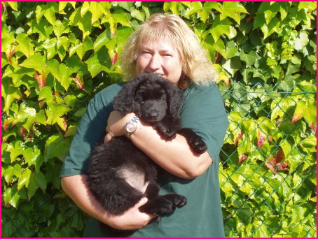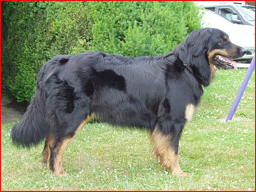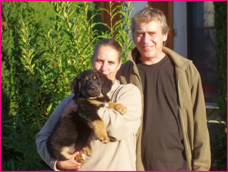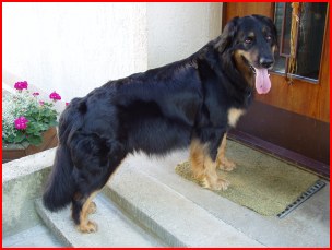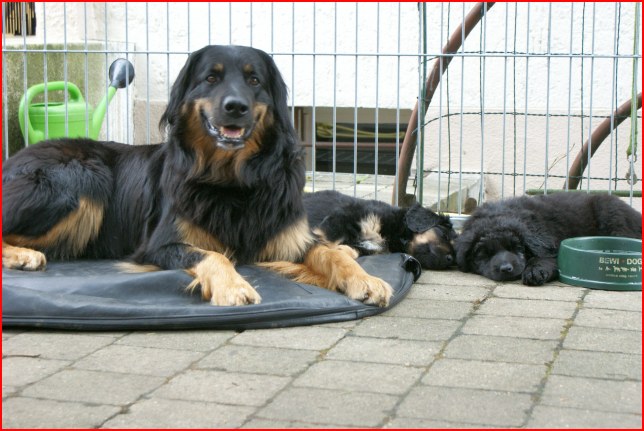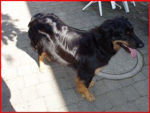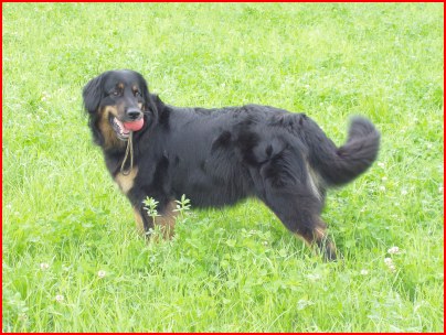 WT: 13.06.02 BH HD-F A1 Ausstellungsbewertung: vorzüglich Aragon ist ein kräftiger schwarzer Rüde mit sehr schönem Kopf, korrektem Gebäude und einem flüssigen Gangwerk.(Ausstellungsbericht) Ich lernte ihn als einen souveränen Hovawart kennen mit freundlichem, gelassenem Wesen. Er hat schon vier Würfe, die durchweg begeistern konnten. Somit sind wir sehr gespannt auf unseren Nachwuchs!! |