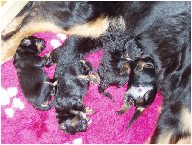 Am 5. Juli 2008 wurden 4 sm-Hündinnen, 1 schwarze Hündin und 1 sm-Rüde geboren.
