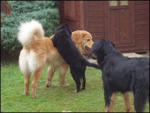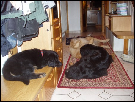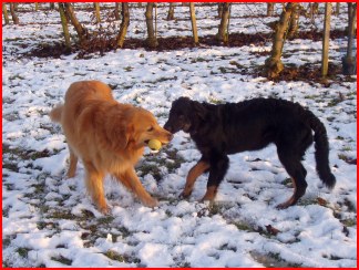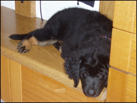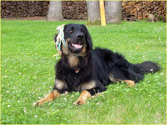 | Hallo, hier bin ich nun, die "Auserwählte" von Frauchen! Ich heiße eigentlich Bryana, aber ich höre auch auf Jana, oder Janni, eben auf alles, was sich verheißungsvoll anhört wie:"Es gibt gleich ein Leckerli!!" |
