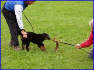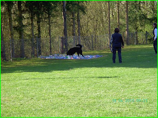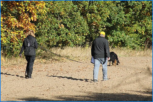 Nachdem die ersten beiden Teilnehmer durchgefallen waren, musste Sabine mit ihrer Bryana an den Start. Trotz enormer Schwierigkeiten durch Wind und den starken Geruch durch den Raps ersuchte sich die Hündin 86 Punkte! Am 2. Tag suchte Bryana 90 Punkte .Lediglich kleine Ungenauigkeiten an den Gegenständen brachten die Abzüge..