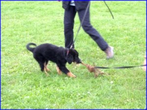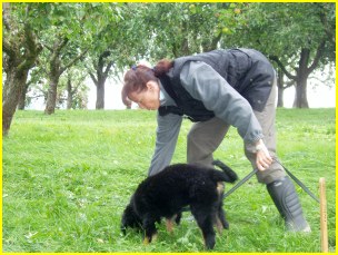 Inzwischen ging das Fährtentraining weiter, obwohl zuhause im Sommer der D-Wurf vom Hohenloher Land fiel. D.h.: wenig Zeit für das Hundeplatztraining.