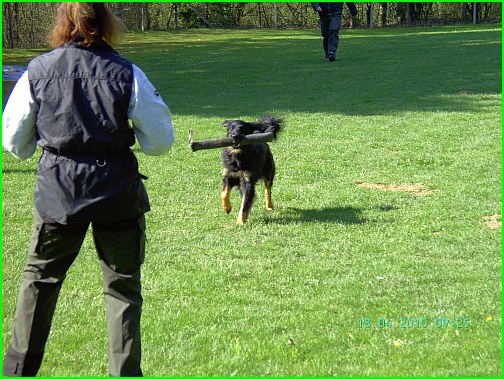 Sie hat alles super gemacht, hatte keinerlei Schwierigkeiten auf dem Parcours, zeigte eine sichere Verteidigungsbereitschaft und einen "ausgeprägten Beutetrieb". Bei der Erscheinungsbild-Beurteilung war sie sicher und unbefangen und bekam von der Körmeisterin, Kirsten Wesche, ein lebhaftes Wesen bescheinigt.