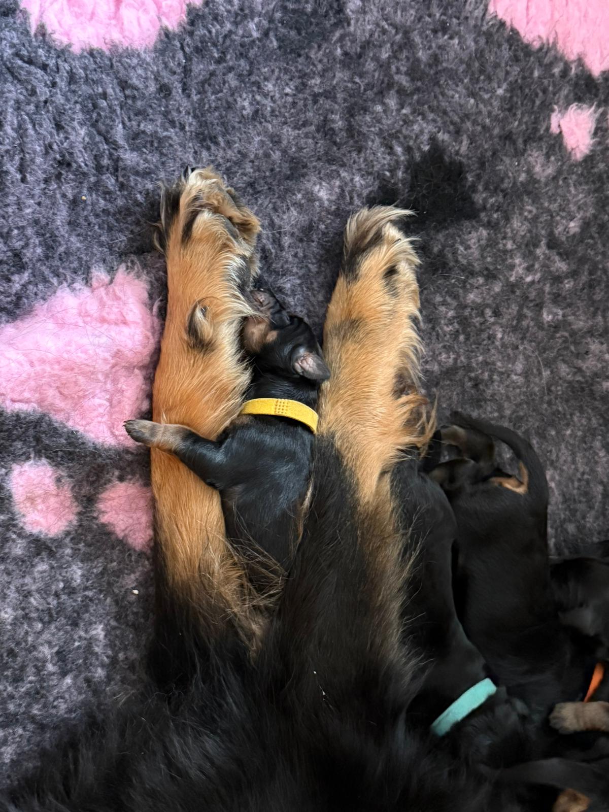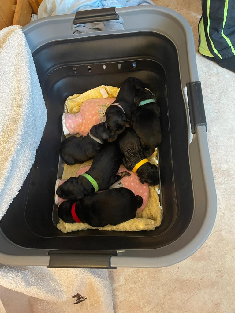5 Rüden und 3 Hündinnen alle schwarzmarken. Sie sind wunderschön und topfit.